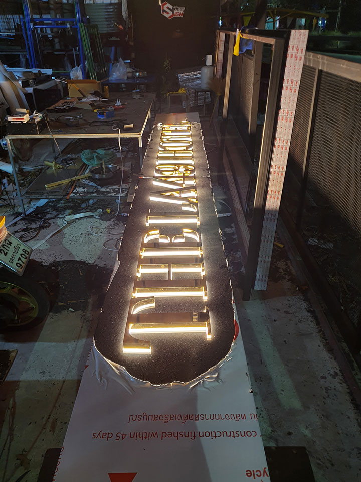 อักษรโลหะไฟออกหลังจัดเป็นตัวอักษรที่ได้รับความนิยมใช้กันอย่างมากมาย หลากหลาย สำหรับลูกค้าที่ต้องการให้ชื่อร้าน มีความโดดเด่นในเวลากลางคืนตัวอักษรด้านหน้าจะมืดในเวลากลางคืน แสงไฟ LED จะออกรอบๆตัวอักษรด้านหลังทำให้ป้ายโดดเด่นเป็นอย่างมาก อีกทั้งให้ความรู้สึกเหมือนตัวอักษรหรือป้ายของท่านมีมิติและสะดุดตา เสมือนตัวอักษรกำลังลอยออกมาจากผนัง ใช้งานได้ทั้ง Indoor และ Outdoor