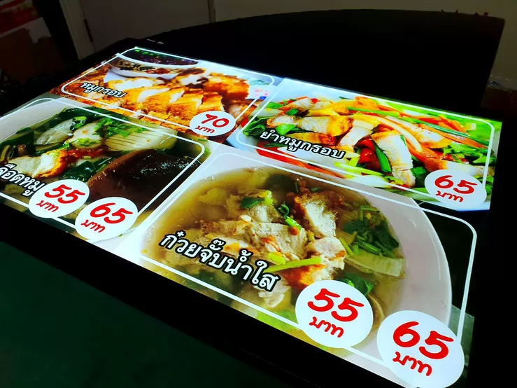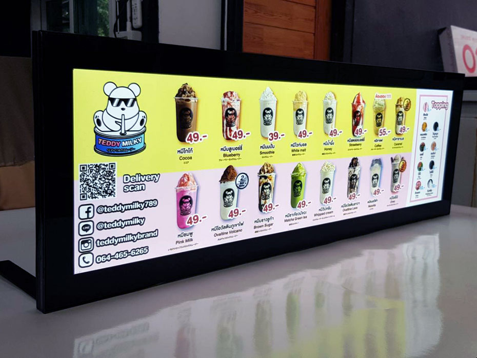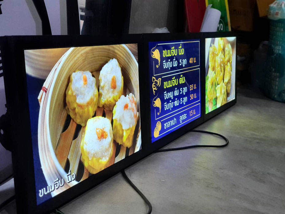 3. กรอบป้ายไฟแบบคริสตัล Crystal Light Frame : เป็นกรอบป้ายไฟ LED ที่ไร้ขอบ บางเฉียบ ซึ่งผลิตจากวัสดุอะคริลิคที่มีความหนาเพียง 3 มม.พร้อมติดหมุด 4 มุม ดีไซน์ให้แสงออกจากด้านข้างด้วยไฟ LED ที่นำมาใช้เป็นส่วนประกอบในการให้แสงสว่างที่ดูสบายตา ให้ความสว่างที่สม่ำเสมอซึ่งสามารถติดบนผนังห้อยติดเพดาน หรือตั้งบนโต๊ะเค้าเตอร์ต่างๆ ได้ เปลี่ยนภาพกราฟฟิคได้อย่างง่ายดาย โดยใส่รูปภาพลงในกรอบป้ายไฟแบบคริสตัลหมุนน็อตสแตนเลส ด้านหลังจากนั้นนำรูปภาพที่ต้องการ มาใส่หมุนน็อต กลับคืนตามเดิม ติดตั้งได้เองง่ายๆ เหมาะสำหรับตกแต่ง สถานที่ต่างๆ อาทิ เช่น บ้าน ร้านค้า หรือเมนูอาหาร เพื่อเพิ่มสีสันให้กับสถานที่ให้สวยงามและดูโมเดิร์นอีกด้วย
